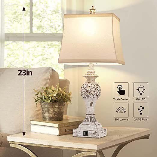 Touch Console Lights Set of 2, 3-Way Dimmable Bedside Lamp with Dual USB Charging Ports, Modern White Bedside Table Lamp for Living Room Bedroom, Bulb Included